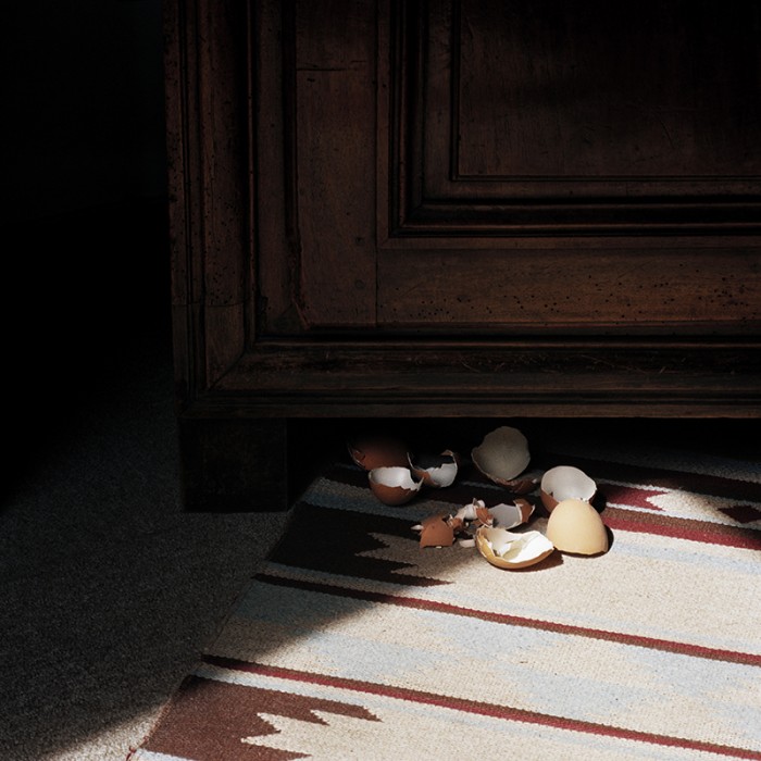 Between Finger and Thumb is an autobiographical and self-reflective piece of work that addresses the issue of memory within the context of the family and its domestic environment. For the purpose of this series, Serrano used the camera as a tool for the production and re-enactment of memories within her childhood home. To do so, she presents us with scenarios that put forward the playful conceptualism of still life, creating and arranging scenes that rely entirely on the symbolic value of objects as reminders of people, lost feelings and past events. While the project explores the complex mechanism of reconstructed memories, questioning the veracity of our own history, it also reflects upon the psychology of a space that is dear to all of us. A place that is also the theatre of more sinister matters as it shelters in its darkest recesses and forgotten margins the remnants of past conflicts and family dramas.