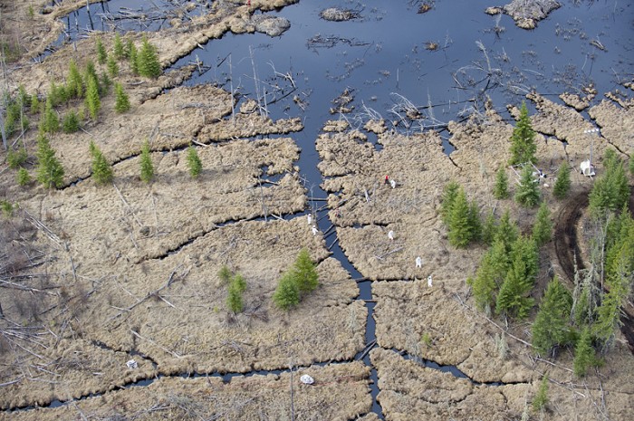 20110505 - Evi, Alberta, Canada - Crews work to clean up at Rainbow Pipeline's oil spill, the worst Alberta oil spill in 35 years, dumping 28, 000 barrels of oil into a wetland area at Evi, Alberta which is near Little Buffalo, Alberta, Canada. Rainbow Pipeline is owned by a Canadian subsidiary of Houston-based Plains All American Pipeline L.P.