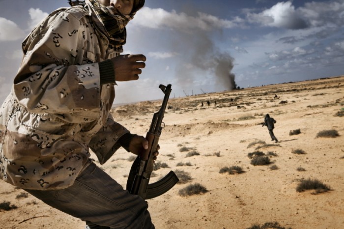 In February 2011, an uprising against Libyan leader Muammar Gaddafi's 41-year-old autocratic rule, has left an estimated 1,000 people dead and many wounded. Several parts of Libya, including Libya's second largest city, Benghazi, have been taken by anti-government rebels, who have since formed an Interim Transitional National Council. Benghazi, where rebel headquarters are located, has sustained air strikes and ongoing clashes by forces loyal to Gaddafi and is threatened by heavy fighting in nearby Ajdabiya, near the Egyptian border. In the capital, Tripoli, pro-government demonstrators take to the streets with support for their leader. The conflict has led to an immense exodus of people by land, sea and air, while many remain stranded.