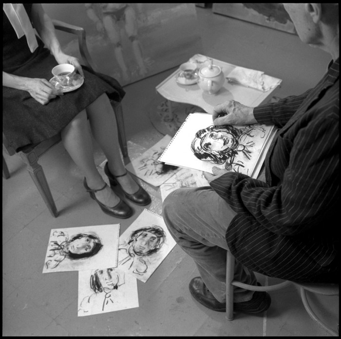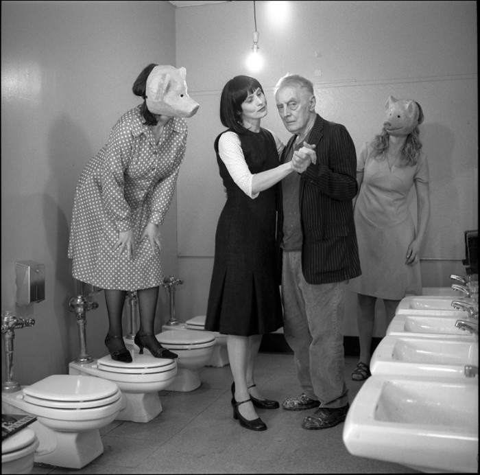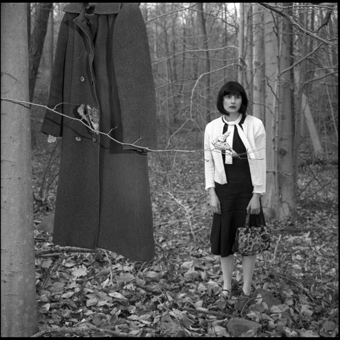 Ohnmacht is a photographic narrative of a character, myself, undergoing a surreal, fantastic and dreamlike journey. The environments I am traveling through are stripped of time and the characters I encounter (the painter, the dancing pigs, the cone-headed creature and the invisible dog that is preying on me in form of a shadow) are otherworldly.