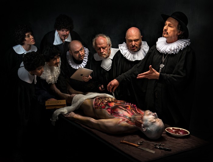A light-hearted homage to a famous Rembrandt painting. We wanted to recreate Rembrandt's lighting and mood, while not copying it in exact way. And a little detail in photo changes the whole context.