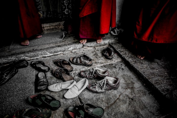 Three monks were check out my friend’s shoes, it’s uncommon to