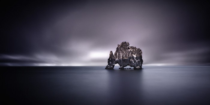 Photographed in Iceland May 2012, this image is a panorama stitched from 4 individual images. The long exposure creates an atmospheric effect and a color cast that enhances the feeling of loneliness, strength and endurance.