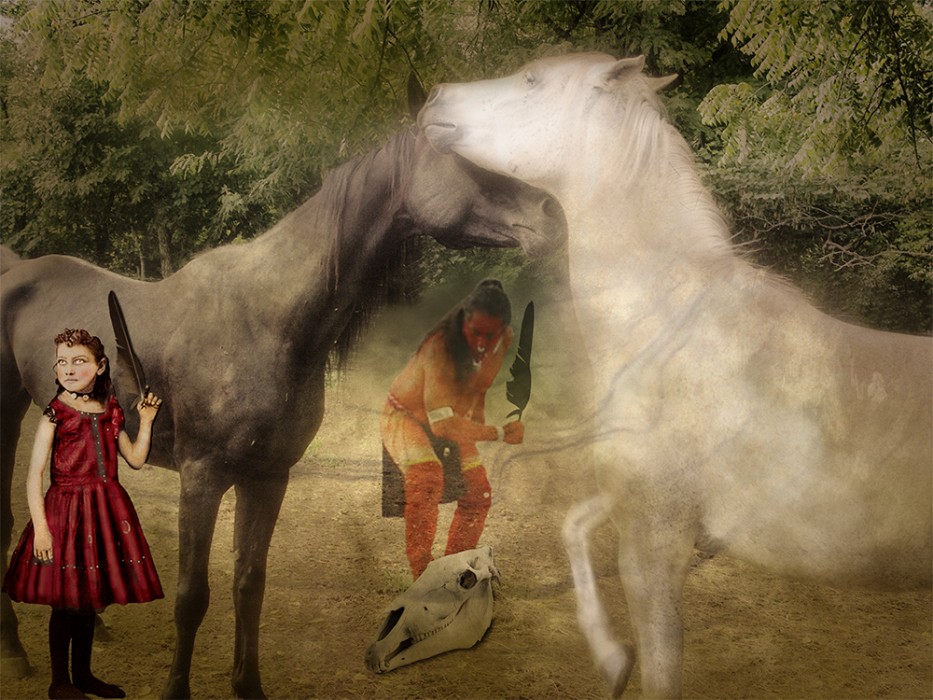 Through the Garden of Childhood consists of seventy photomontages, each paired with a 1000 word story on the facing page. The project is based on true-life experiences from my childhood, growing up in Tahlequah, Oklahoma, the Capital of the Five Civilized Tribes (Cherokee, Chickasaw, Choctaw, Creek and Seminole).
