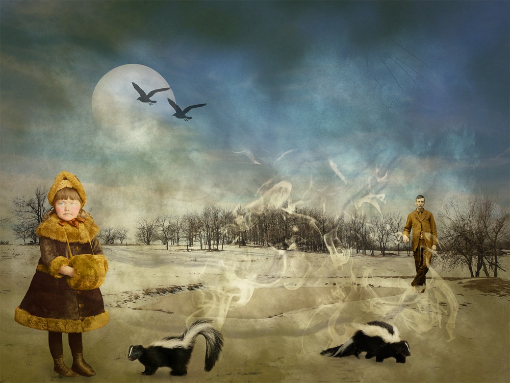 I am working conceptually, creating a world that speaks to another era and that extends beyond the realm of the camera. I strive to make images, which blur the line of real and not real and possess an otherworldly quality that will transcend into the mythic. It is our world yet it is not. Every image tells a story, but the story is different for every viewer. They are images that begin with the hint of a story yet are ambiguous enough to allow for multiple scenarios. I aim for there to be a sensation of looking into a mythic world, in which the viewers’ imagination is encouraged to wander.