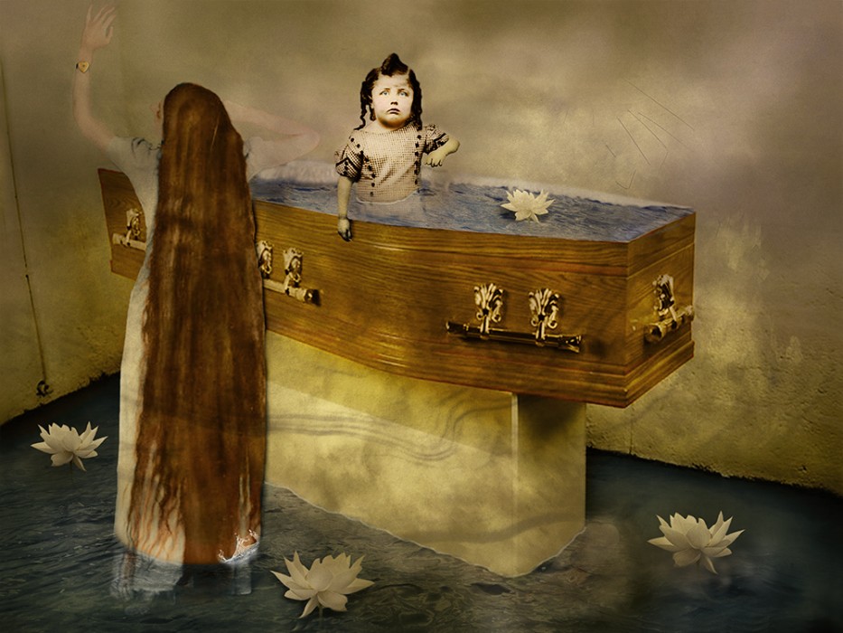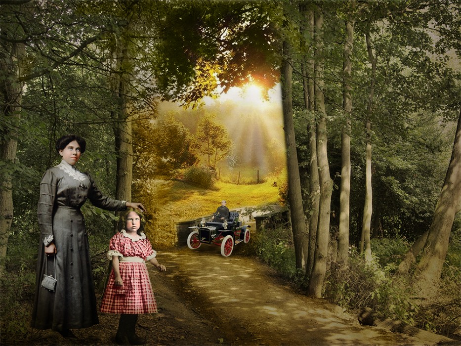 The images are composited using photographs I have taken and vintage images I have collected. The stories portray the experiences, which shaped my imagination and ultimately the person I became. I am both a photographer and by profession a psychotherapist.