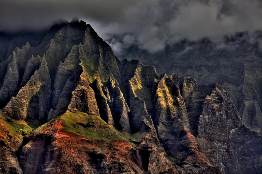The cliffs of the Na Pali Coast along the rugged coastline of