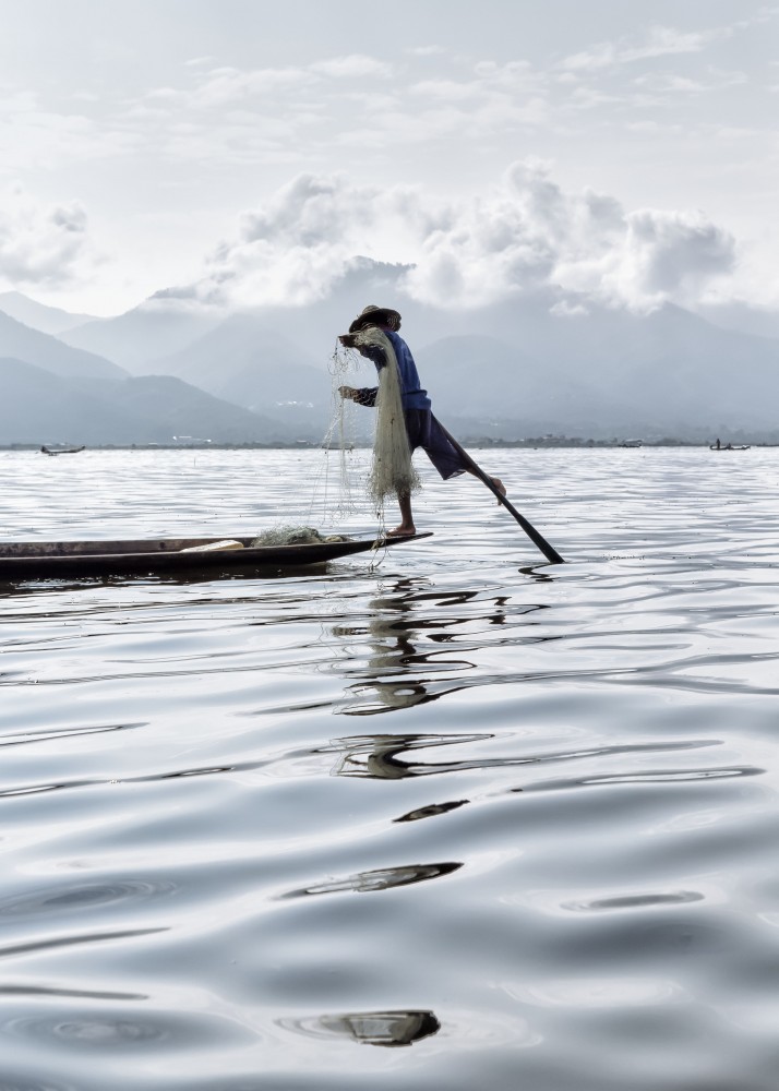 I made a 3-week long photography voyage in Myanmar, roaming throughout the country, taking photos of the kind locals, intricate Buddhist temples and stunning landscapes. This photo was taken on Inle Lake, where the fishermen have a very specific fishing method of rowing with one leg wrapped around their ore.