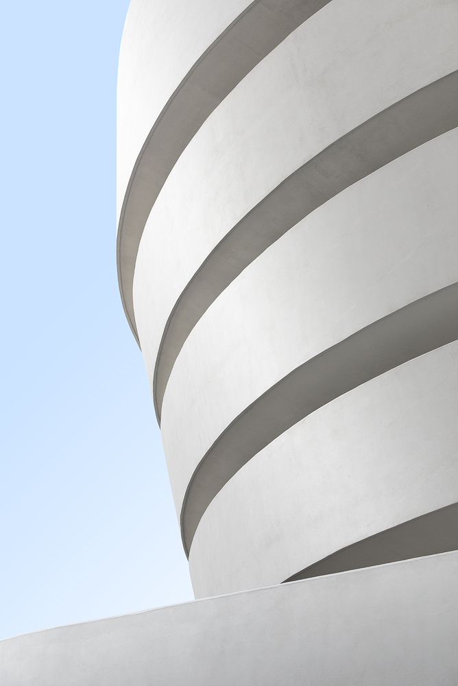 I've long appreciated Frank Lloyd Wright's Solomon R. Guggenheim Museum in New York, NY. The exterior is both bold and minimal. In this series I've tried to capture both characteristics in a somewhat abstract way.