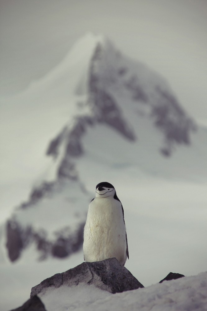 Pygoscelis Antarctica stands on high and watches us, he’s like a cherub quietly tell us “Welcome to the Antarctic, please showed your deference.”