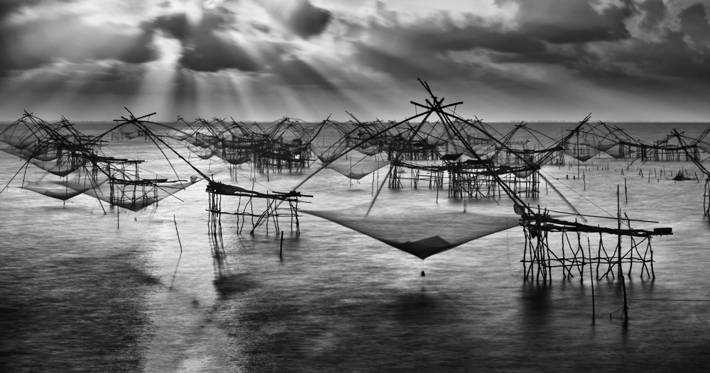 The unique and artistic Chinese fishing nets found at Phatthalung, Thailand.