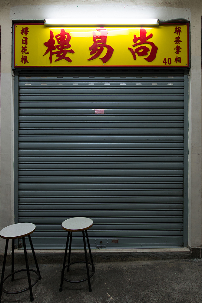 concrete building behind a taoist temple in Hong Kong. Alleys