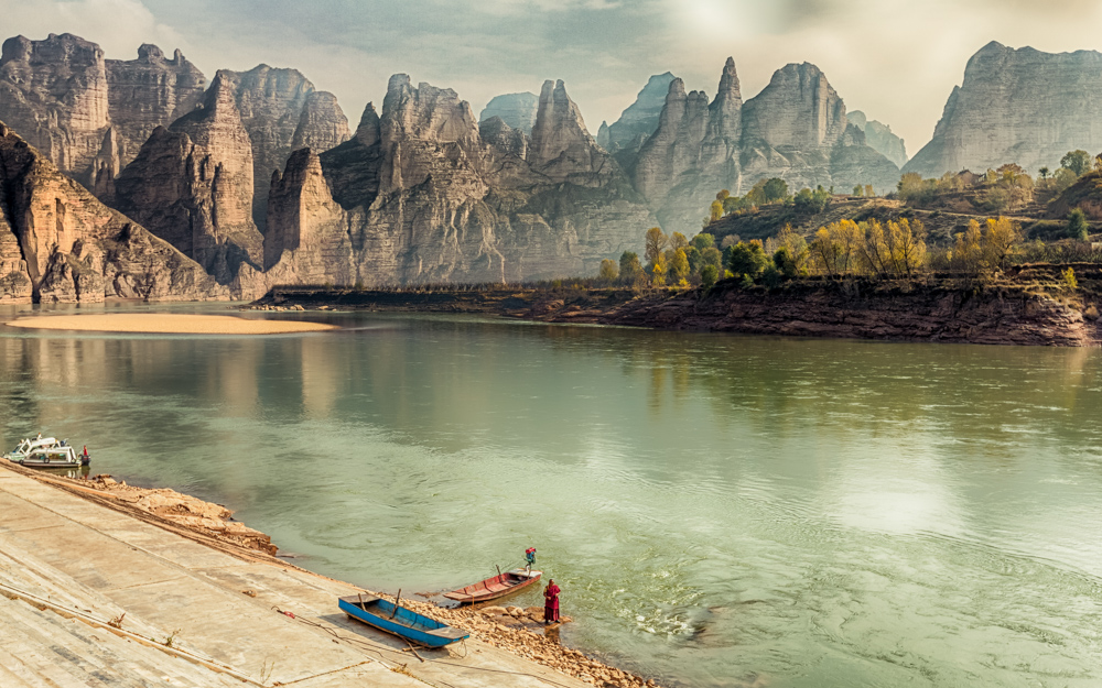 This is a high dynamic range image composed of 5 images, taken on the shores of the Yellow River, running through Gansu province in China.