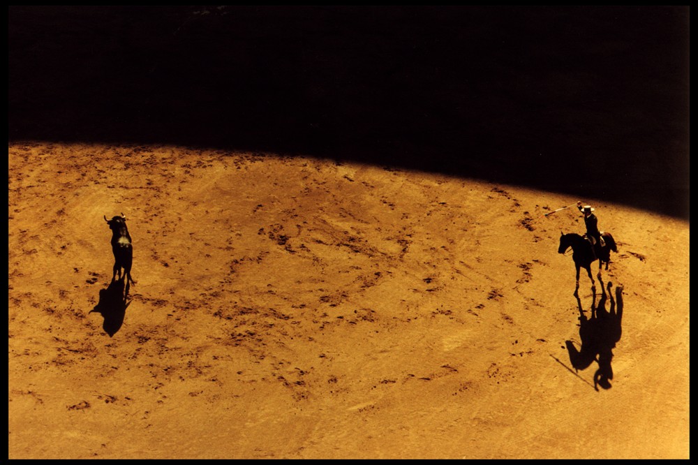 At the Las Ventas bullring in Madrid. The arena was clearly divided in light