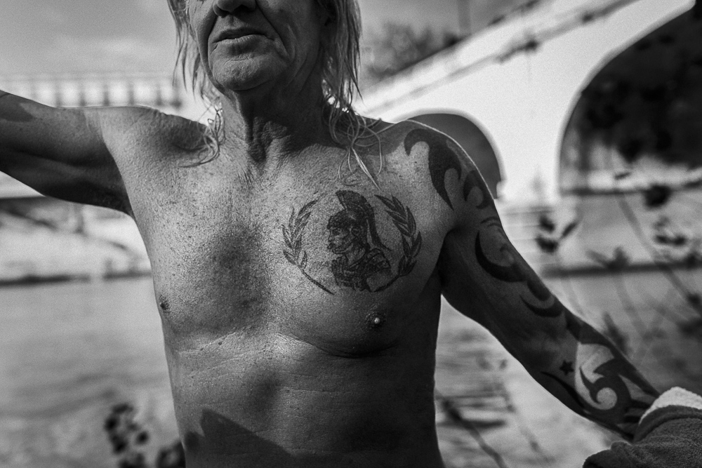 Rome - Maurizio Palmulli, known as 'Mister Ok', dives into the Tiber River from the Cavour bridge, as every first of the year since 1988