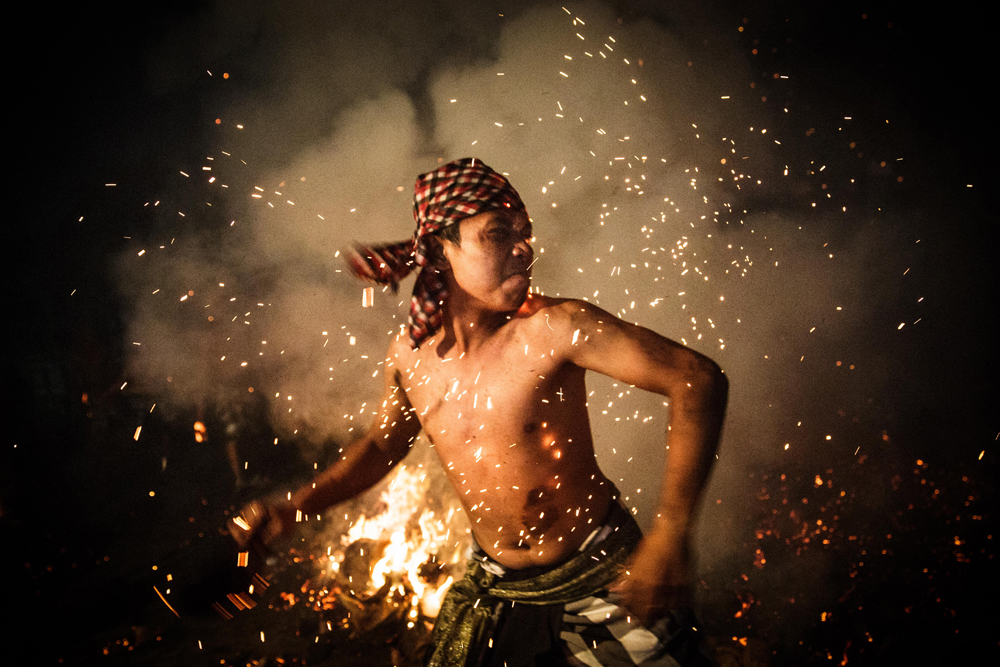 2014 in Gianyar, Bali, Indonesia. Mesabatan Api is held annually