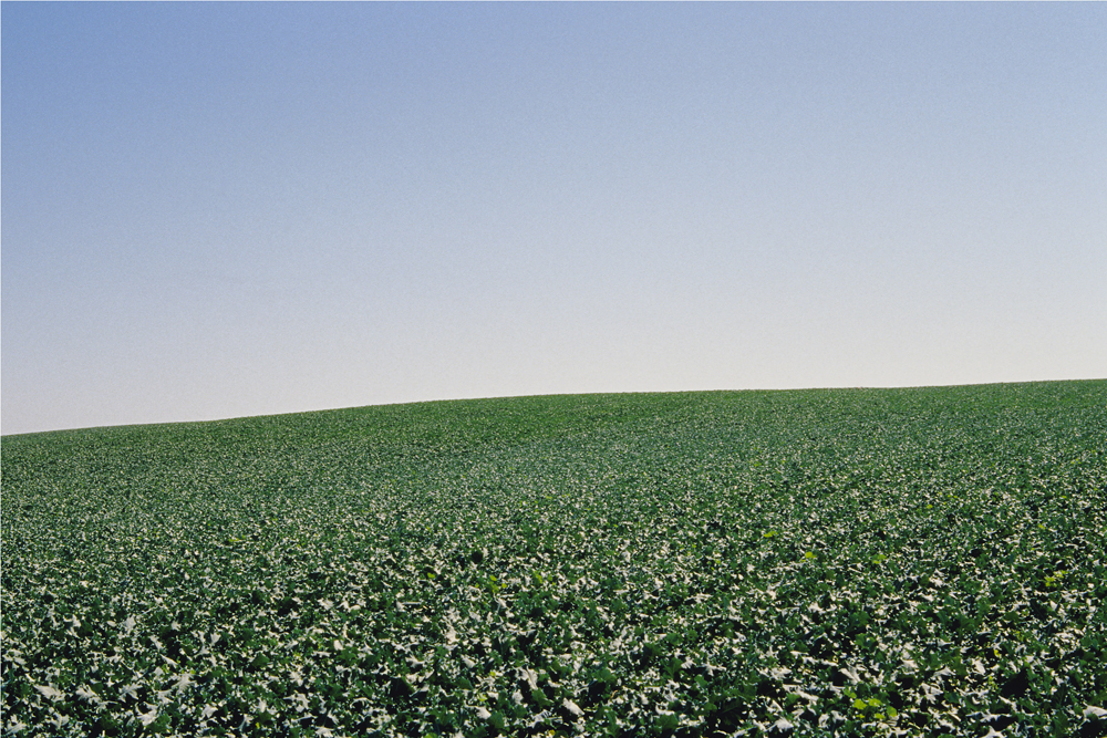 Straight lines of trees, grapes, vegetables, fruit. A mostly denuded, except perhaps for a few sentinels left