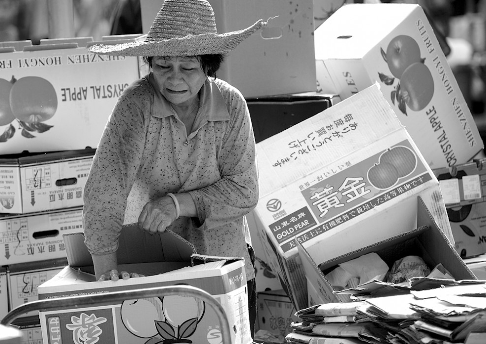 suburbs in HK. The Poor Lady in this picture was collecting carton