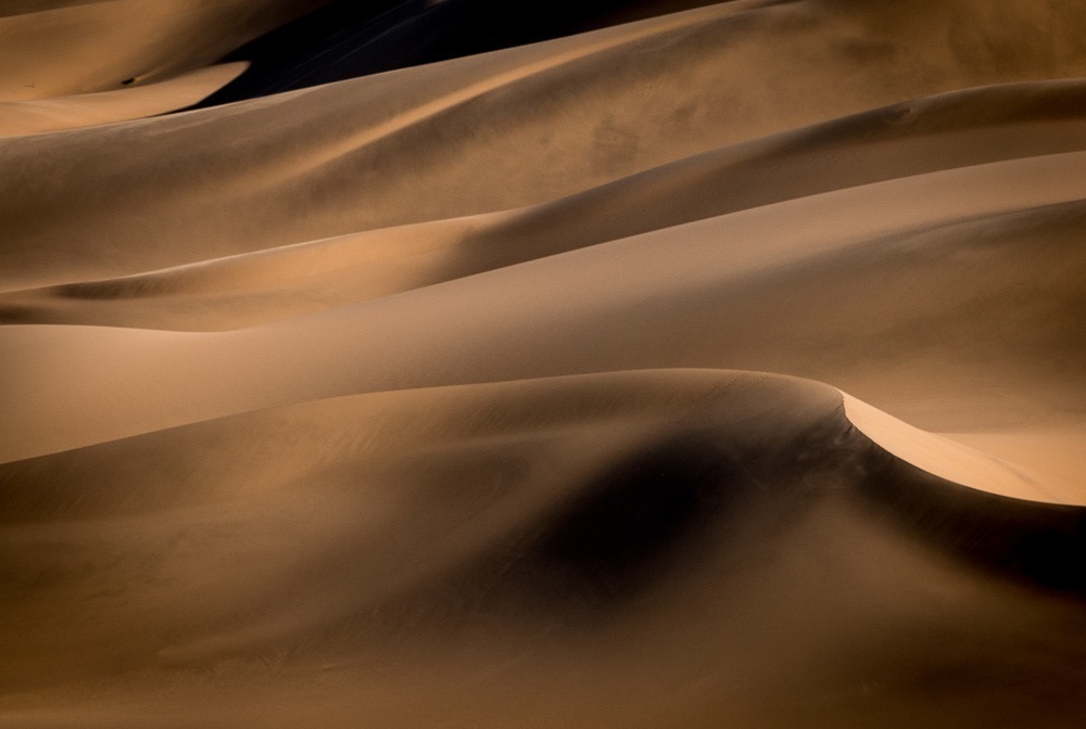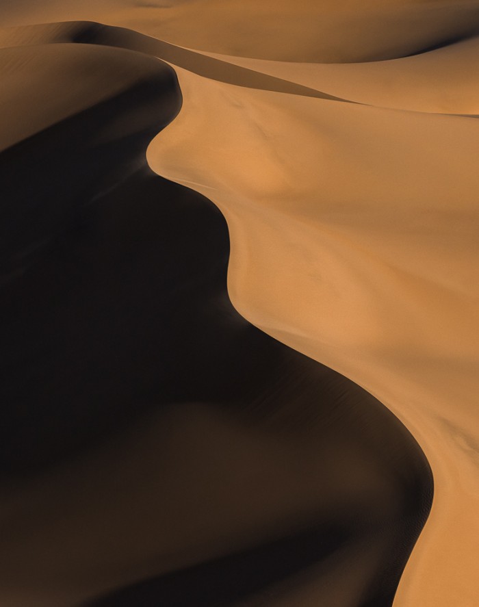 A series of late afternoon aerial photographic abstracts taken from a gyrocopter over Namibian sand dunes near Walvis Bay, Africa