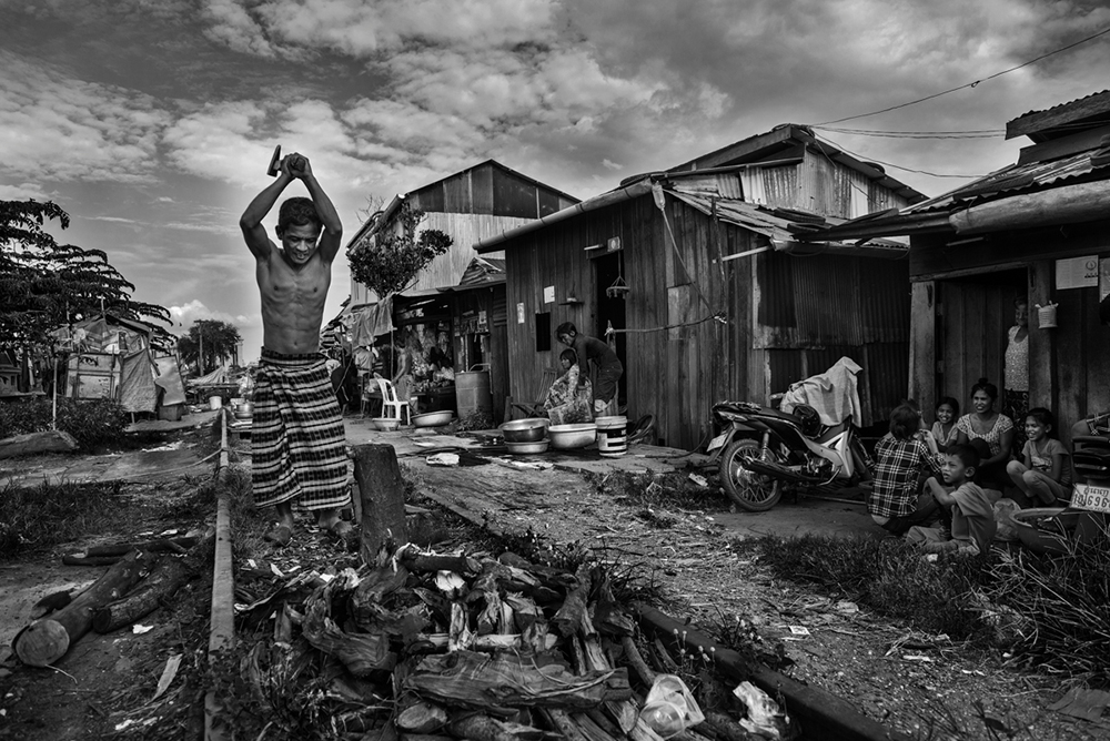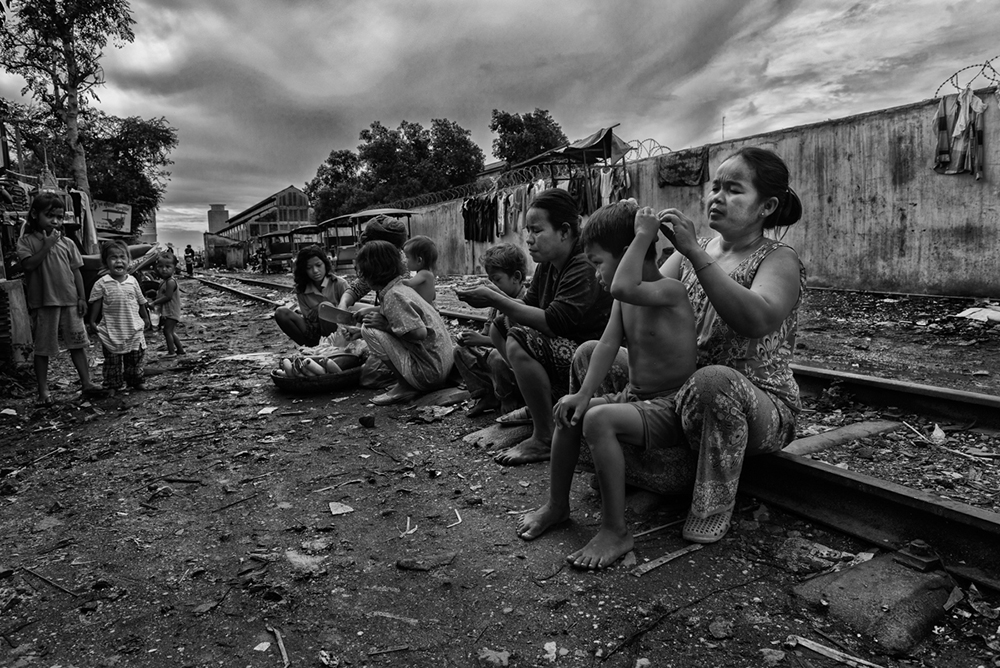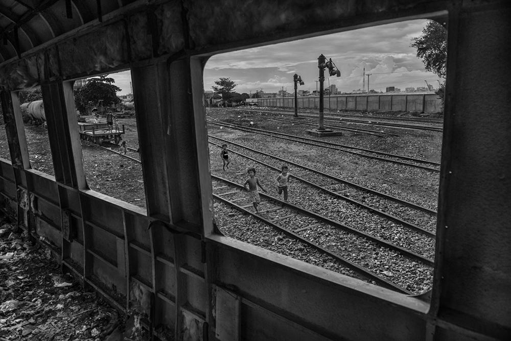 railway tracks and an old abandoned depot. The adults are forced to work long hours daily
