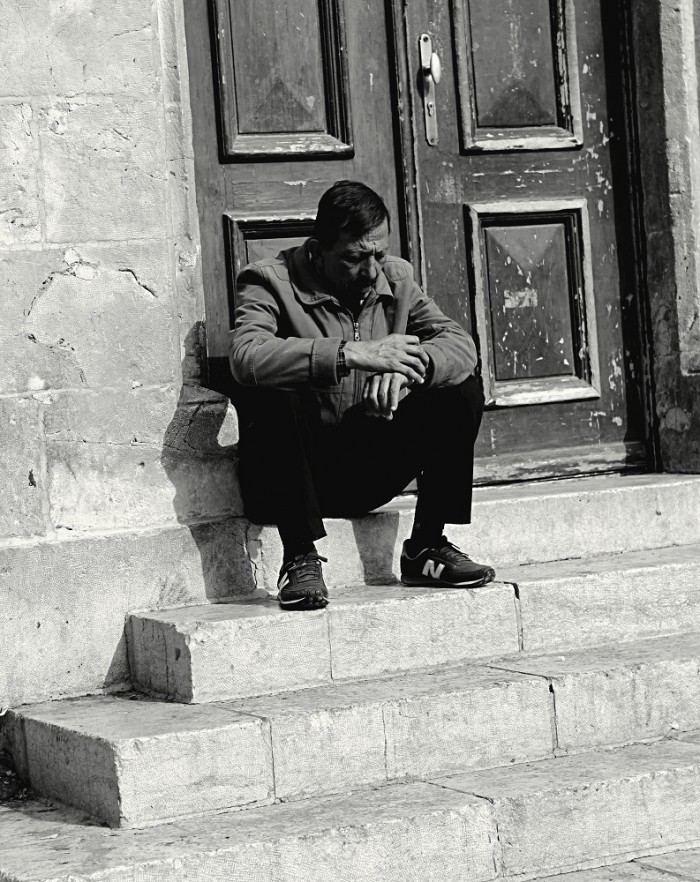 On sympathetic magic, or if you like - trying to reach balance sitting in "New Balance". Near Damascus Gate, Old City of Jerusalem, Israel