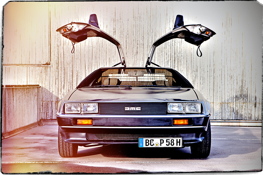 A cult car from the seventies.A winters day.Curved
