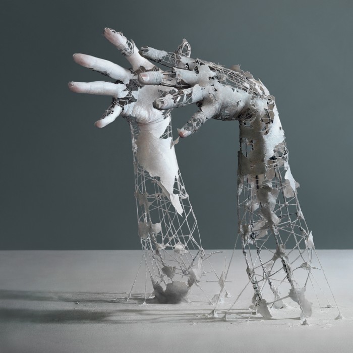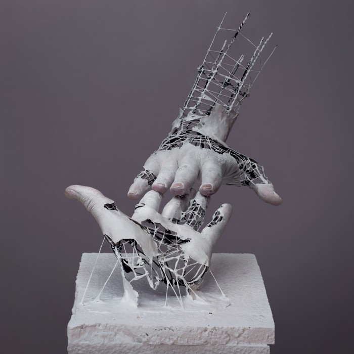 materials such as body parts and models of buildings that I make myself using clay, wire