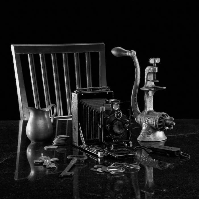 PX3 2015, Honorable Mention in Fine Art/Still Life, "Voighlander Camera and Grandma's Meat Grinder"