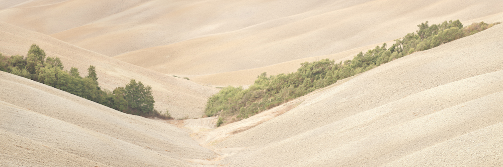 The Crete Senesi are a dry landscape shaped by erosion in Tuscany south of Siena. The distinctive grey or ochre colouration of the soil gives it an appearance often described as lunar, especially in autumn after the harvest.