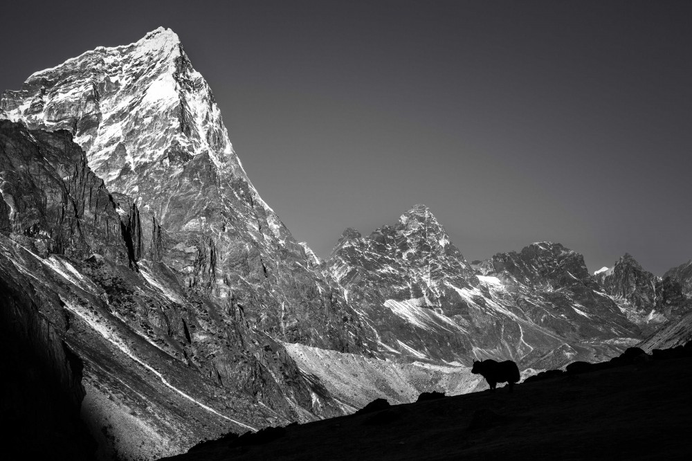 This picture was taken in the Everest region. When i hiked to 4400m. A Yak suddenly appeared and staring at the mountains for a long while.