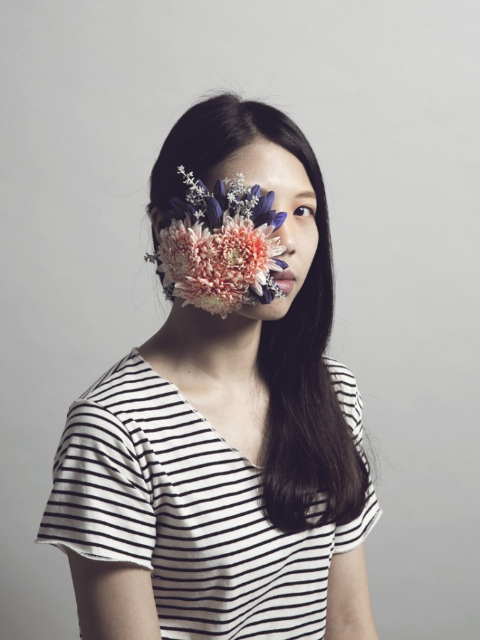 I found women and asked what position of their face that they don't like. I use flower to cover it to present the different aspect of beauty.