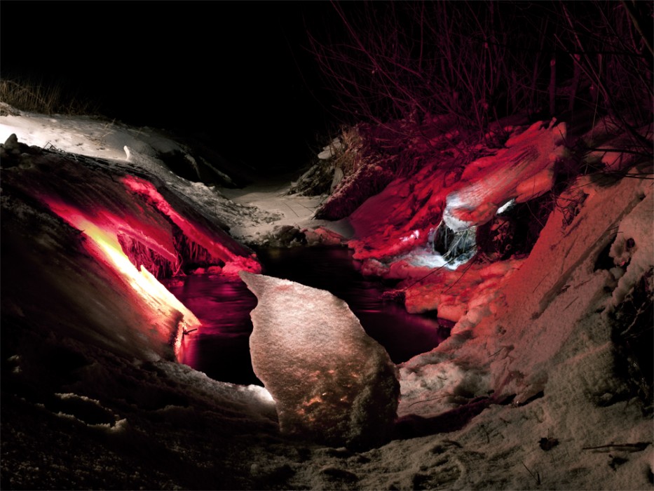 Emma Blackshaw is a photo-based artist residing in Bradford, Ontario. She creates built on-site interventions that temporarily alter a landscape through the genre of night photography. The interventions explore the unique characteristics that lighting can produce within a space. The work focuses on her relationship with Canadian landscapes and how she can stage scenes that exist somewhere between reality and imagination. The lighting transforms the landscapes into mysterious, spooky, and dream-like environments.