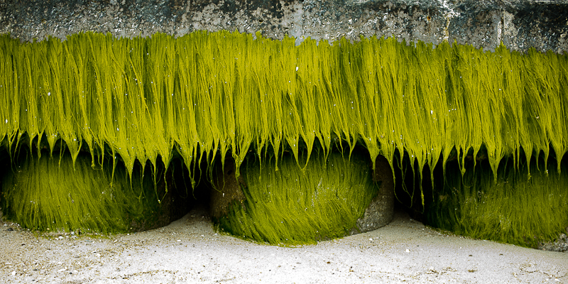 beautiful weave of green moss on a parapet .I was