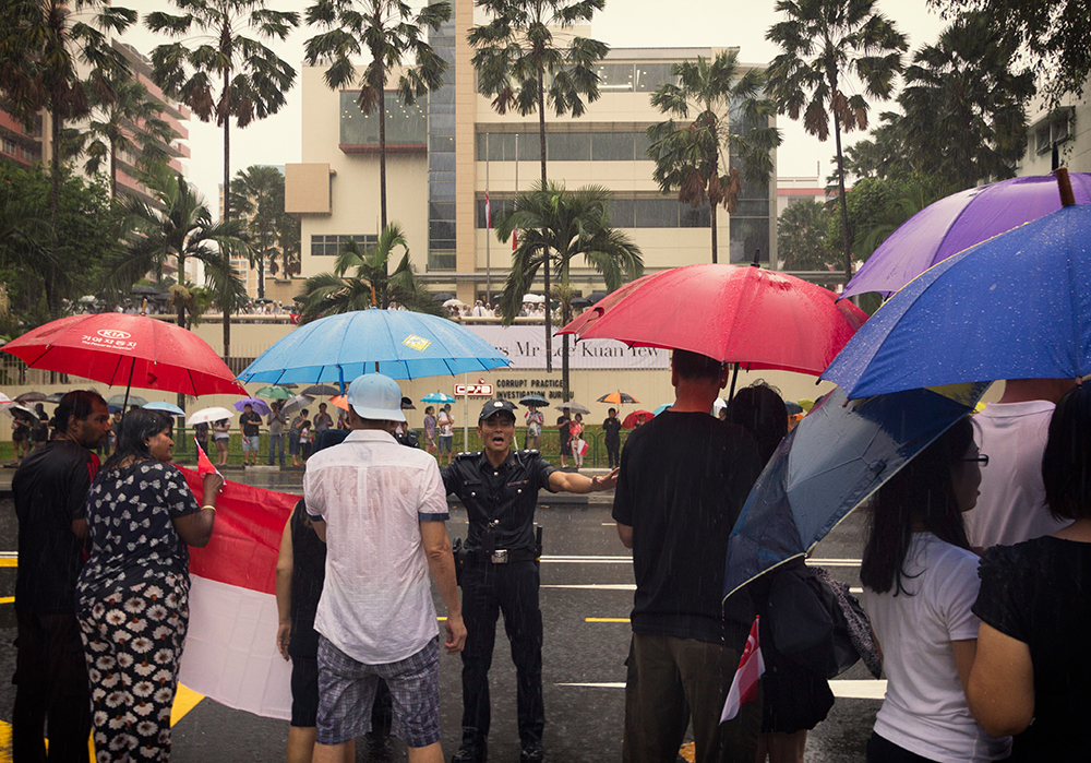 cortege passes by the Corrupt Practices Investigation Bureau (CPIB) along the street of