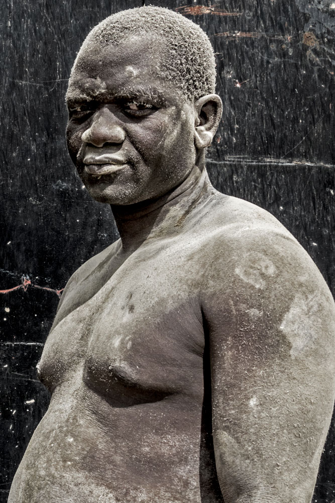 This Tanzanian construction worker spends his days shifting wheelbarrows of cement from