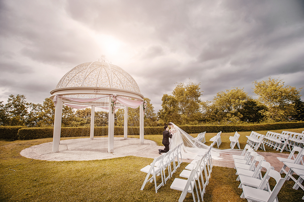 當我親吻我的新娘時,天空灑下的陽光,見證我們的愛情