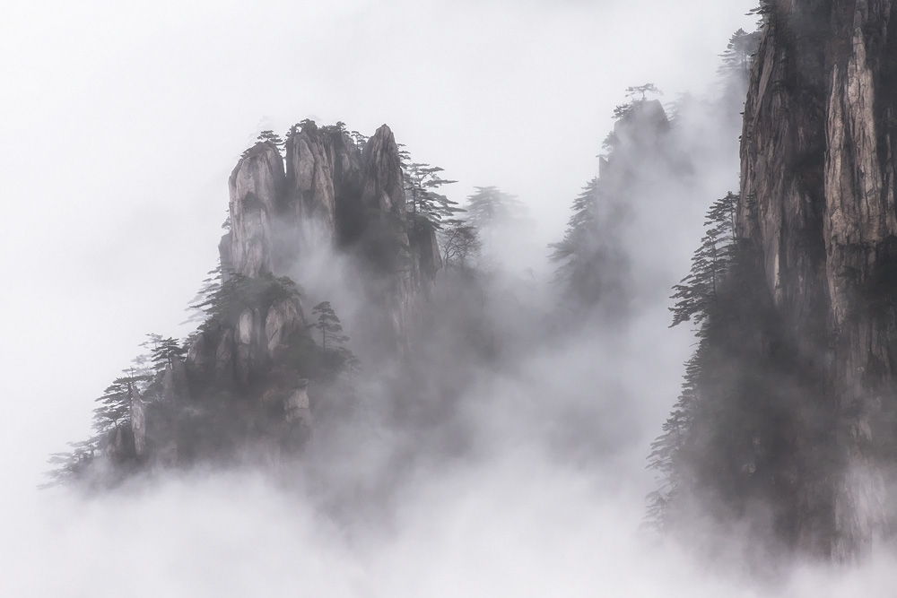rocks and the abrupt cliffs playing hide and seek with clouds.