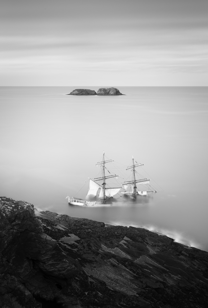 The tall ship Astrid, on the rocks off Kinsale in Ireland.