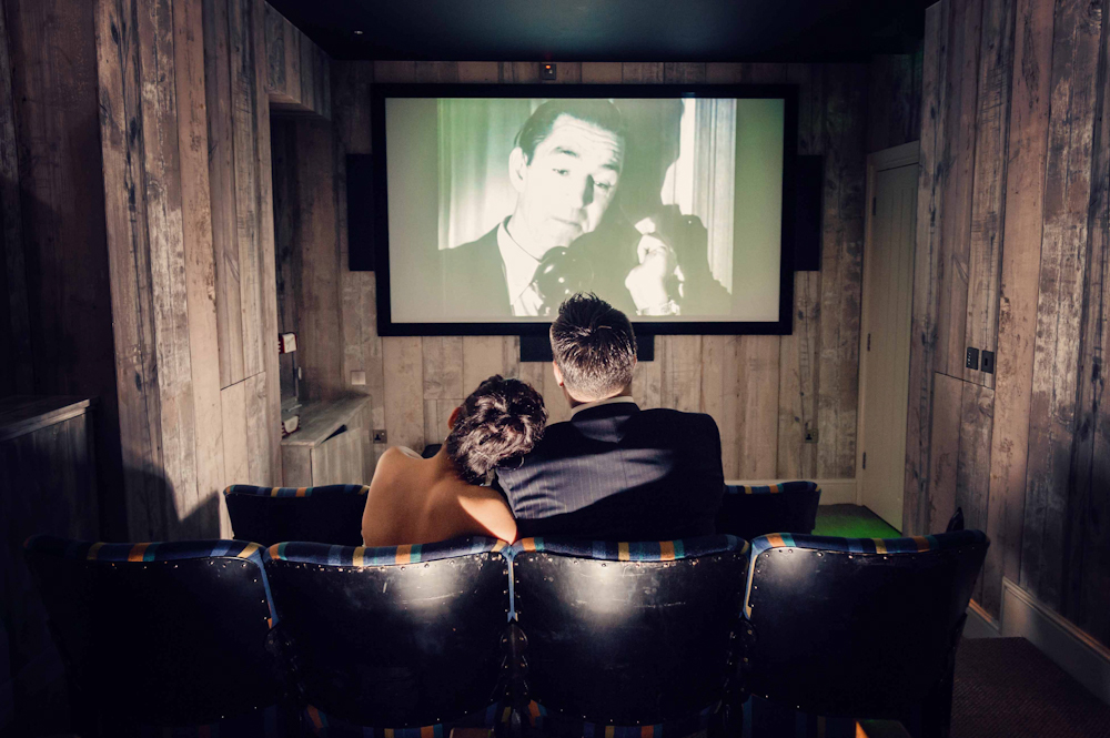 Mark and Zahra on their Wedding day, we snuck them into the Private Cinema at the Hotel to