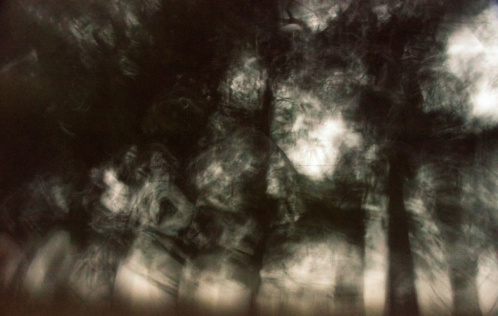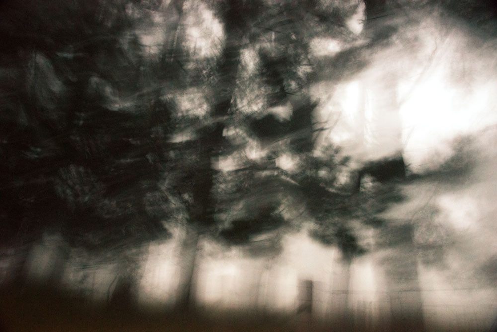 Trees in the mist. Silent, flowing monochromatic sentinels; the