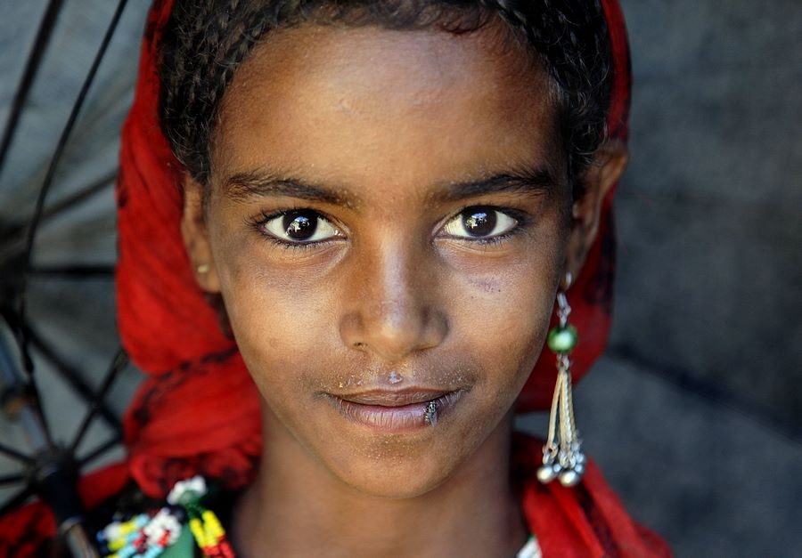 A young girl from Argobba tribe with flighty beauty mark. Ethiopia.