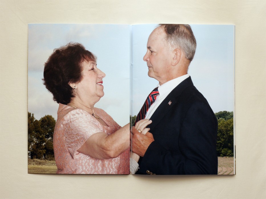 Photographs of couples in profile before a wide coniferous