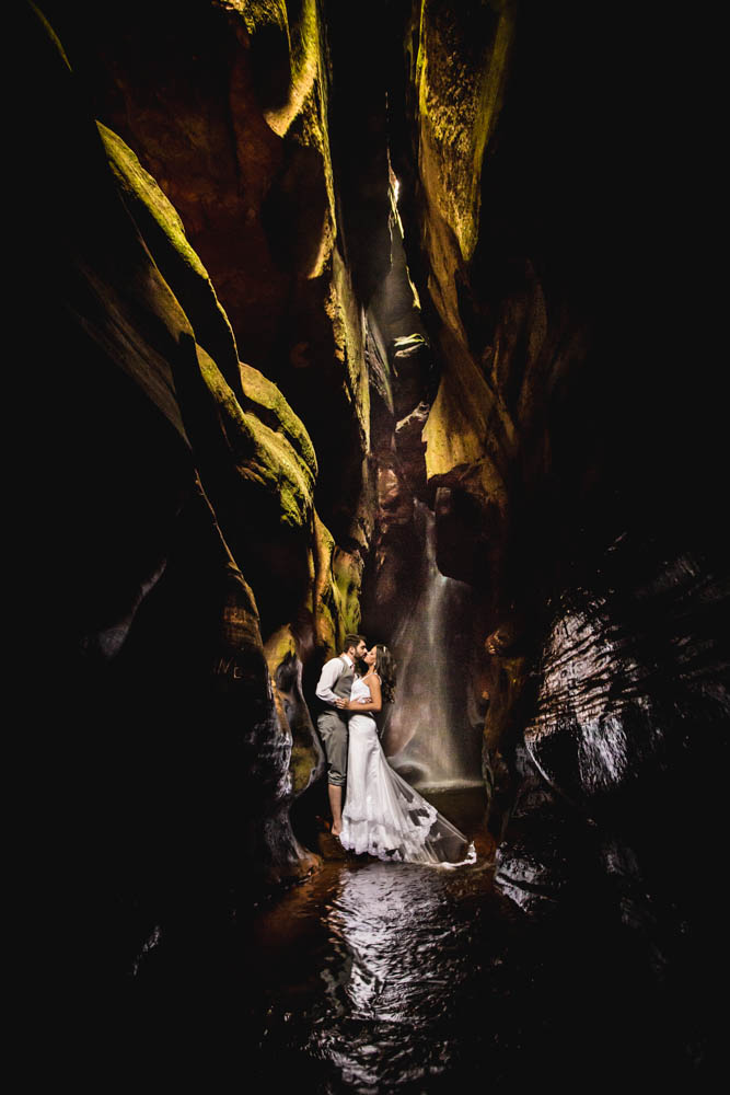 This was a wedding photo shoot inside a cave with waterfall, in a