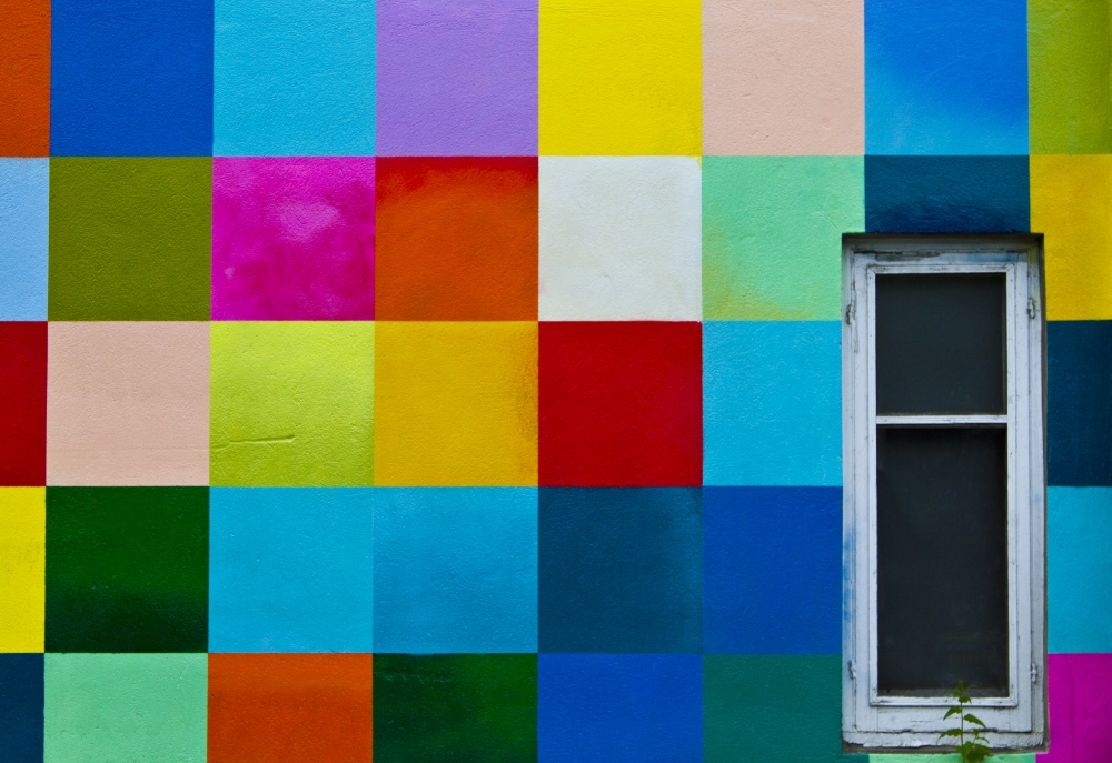 A mural of coloured squares in downtown Calgary, Alberta, Canada.