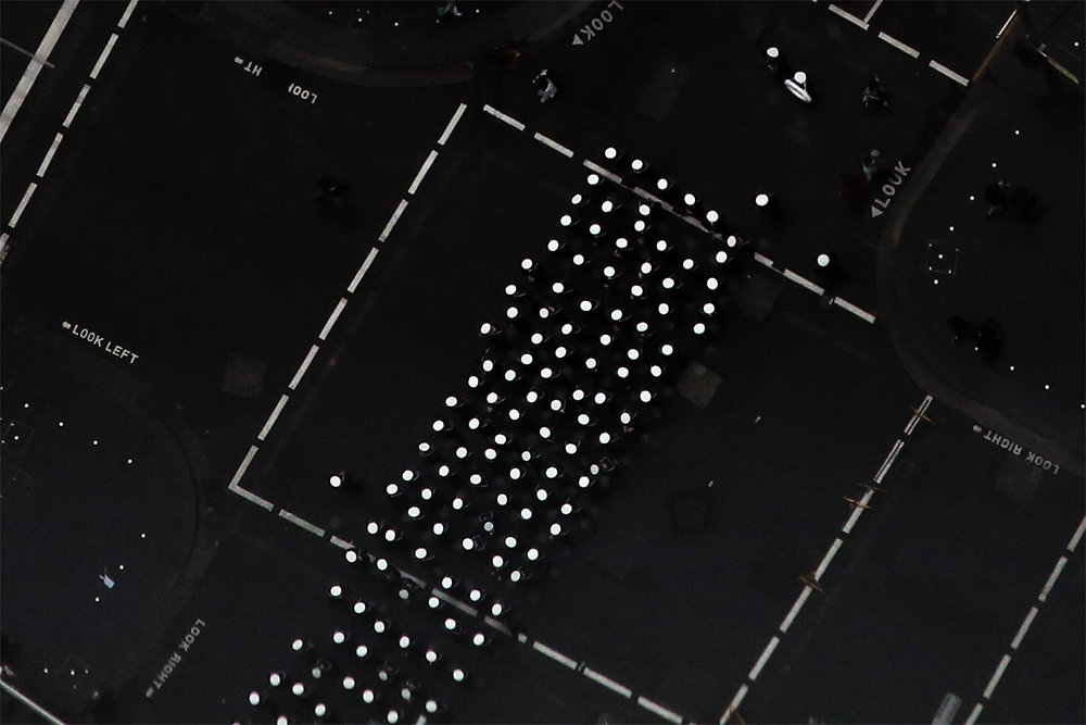 “White Dots”: The military parade seen from above. The navy hats
