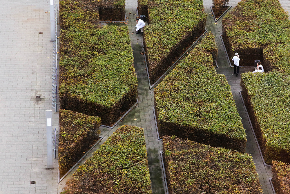 “Desire to be Alone”: Employees from a nearby restaurant taking a
