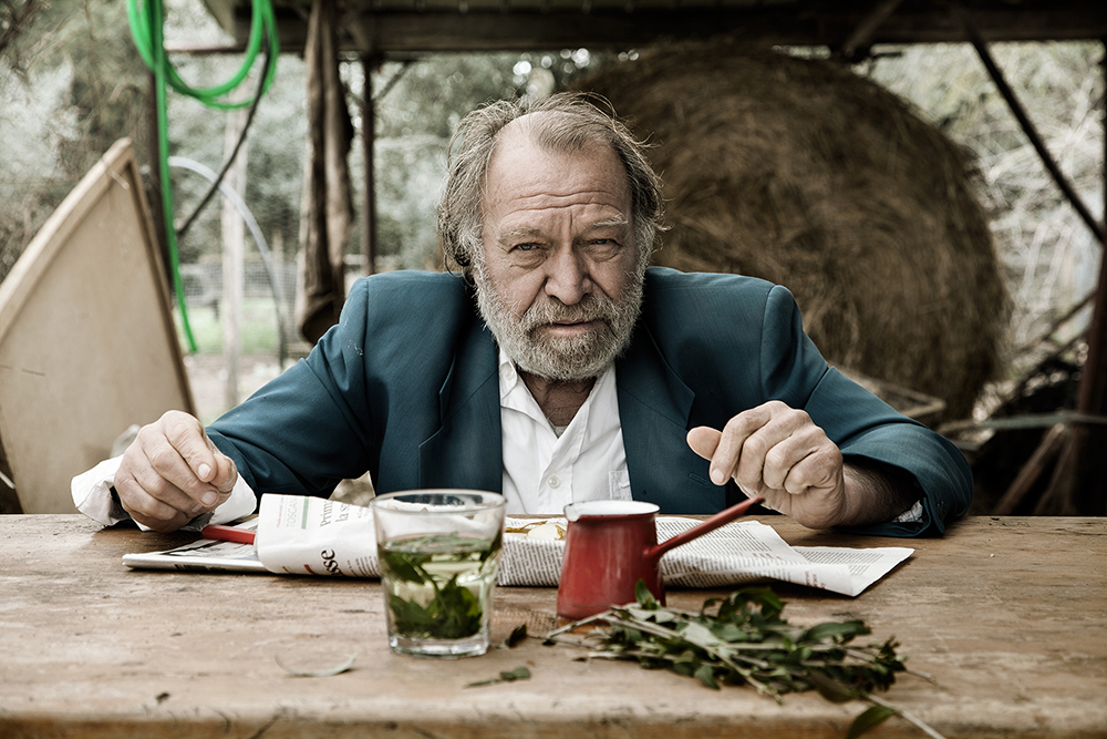 Italian actor Carlo Monni on the set of his last film, "L'ornitorinco",