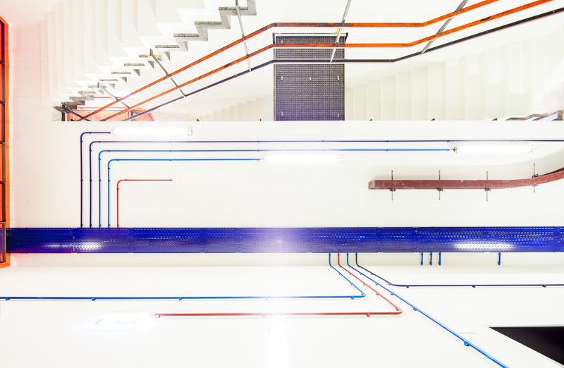 The staircase of a re-designd industrial building photographed for
