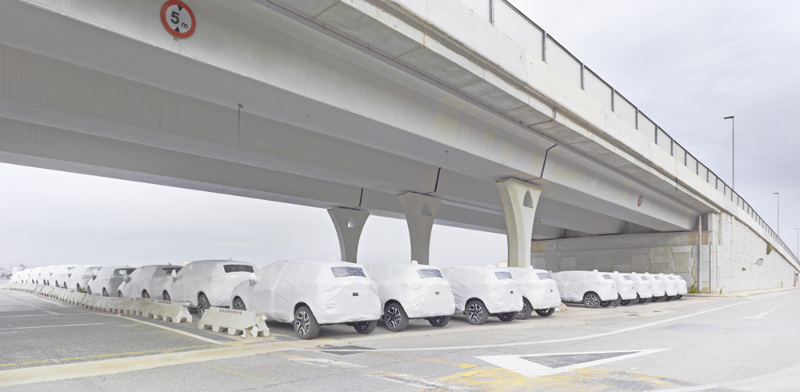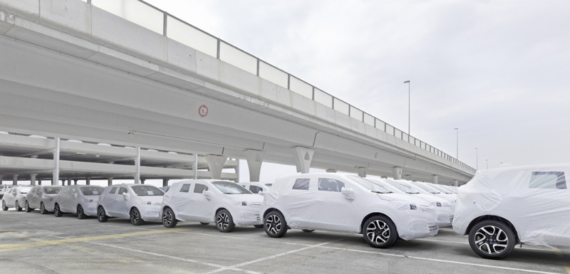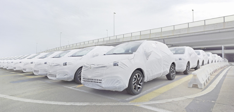 Cars waiting for deployment overseas.