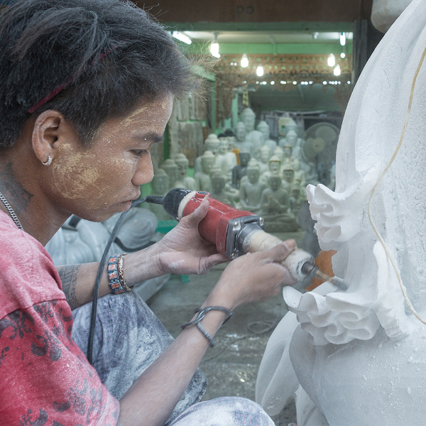 Outside the Mahamuni Temple in Mandalay, Myanmar there is a